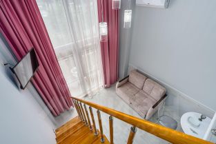 Приглашаем провести свой отпуск, деловую поездку или просто уикенд в уютных апартаментах с зоной лофт в КА Изумрудный город: здесь высокий потолок 4м позволяет эргономично разместится на первом уровне с выходом на балкон и на антресольный этаж