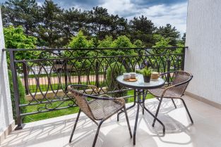 Выход на балкон 5м с видом на зеленую часть придомовой территории комплекса.