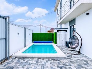 На территории дома есть бассейн с подогревом 5х3 м, глубина 1. 5м с автоматической системой фильтрации, беседка-шатер, зона барбекю, парковка осуществляется на придомовой территории под видеонаблюдением.