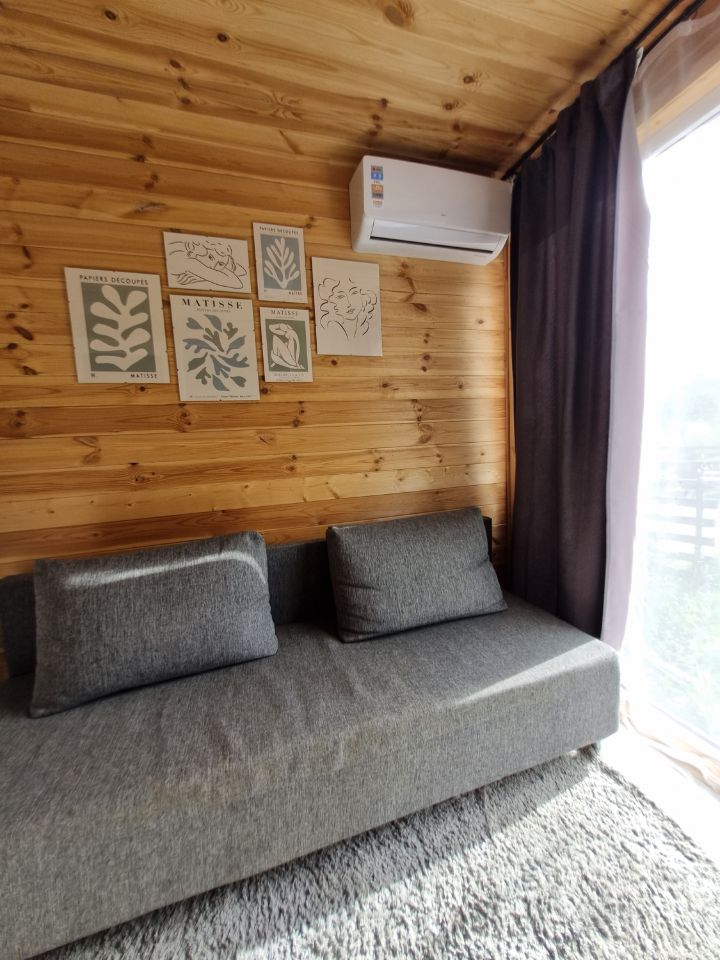 Скандинавский двухкомнатный домик с панорамными окнами, мангальная зона и стоянка у дома. Размещение от 2х до 4х чел.