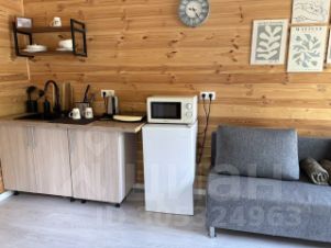 - Гостиная с небольшой кухонной зоной. Небольшой холодильник, индукционная плитка, посуда.