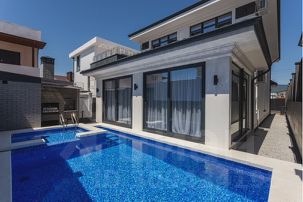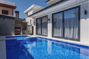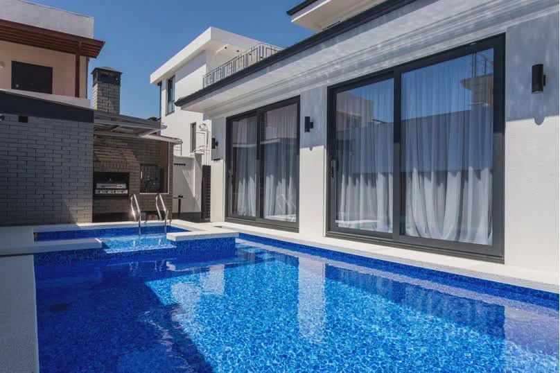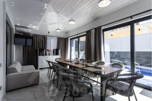 К зоне бассейна прилегает остекленная терраса с огромным столом для вечерних ужинов, два винных ящика ,ТV (SМАRТ),сплит система.В открытом доступе газовый гриль-барбекю для шашлыка.