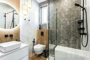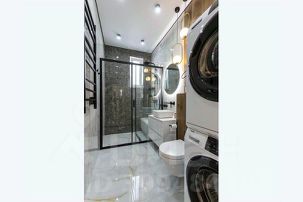Санузел на этаже со стиральной и сушильной машиной.Фен,халат,полотенца,одноразовые тапочки,косметические принадлежности на каждого гостя.