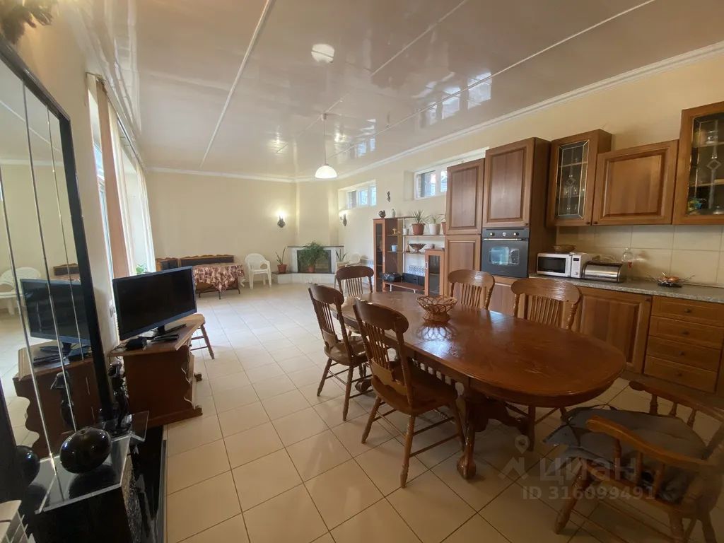 7 комнат, шесть из которых изолированные и одна седьмая смежная, это отдельный блок на втором этаже состоящий из двух смежных комнат разделеннные дверью), два с/у совмещенные с ванными комнатами, отдельное строение во дворе оборудованная кухня 45 кв. Так же в доме шесть кондиционеров, круглосуточная подача горячей и холодной воды, постельное бельё, полотенца во дворе столы для отдыха, лавочки, мангал, парковка у дома на 3-5 автомобилей,