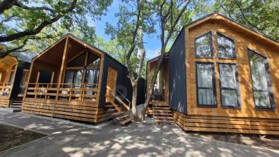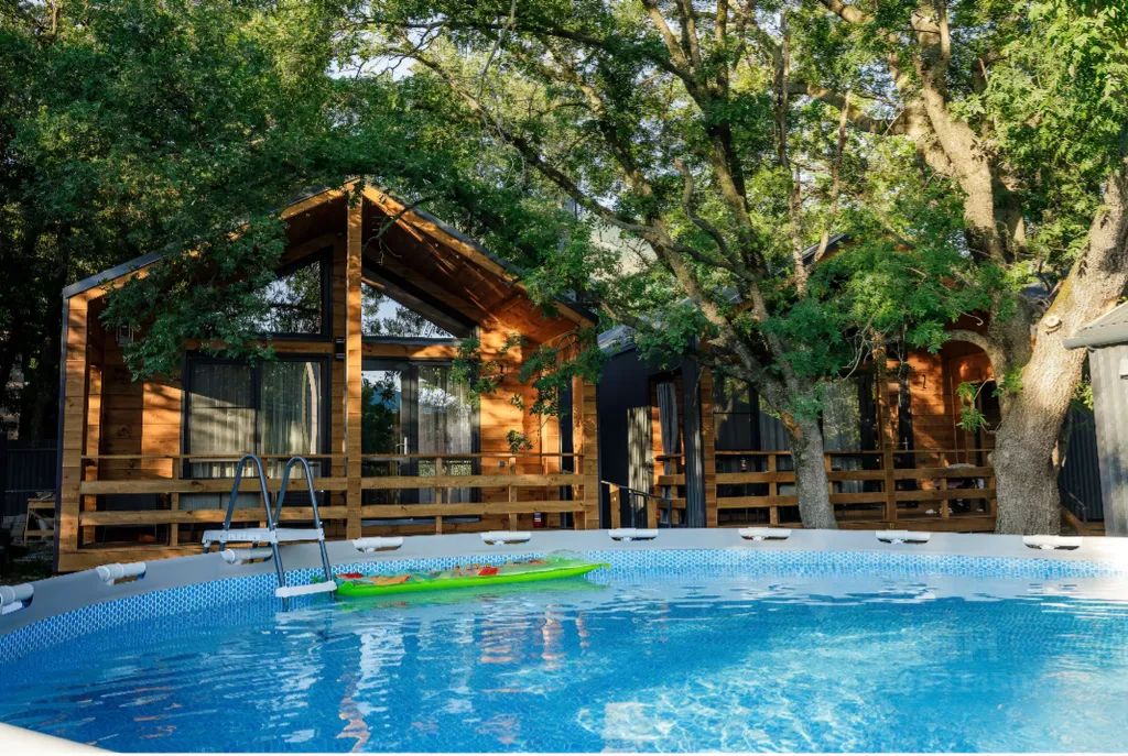 Добрый день уважаемые гости! Рады предложить для проживания новые комфортные дома в стиле "Барнхаус". Дома 44 кв.м. до 6 человек с двумя изолированными спальнями и гостиной с кухонной зоной. На территории есть бассейн, мангальная зона, зона отдыха с качелей и гамаком, детский батут, парковочные места и тд. Свободный и уютный двор, с высокими дубами создаёт атмосферу проживания на природе, но при этом наша турбаза находится в центральной части города в пешей доступности от пляжей и всей инфраструктуры города.