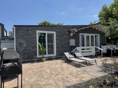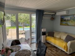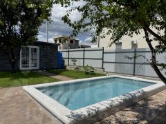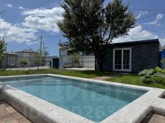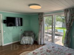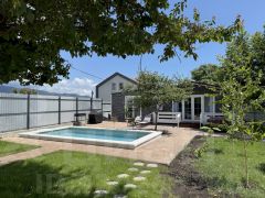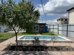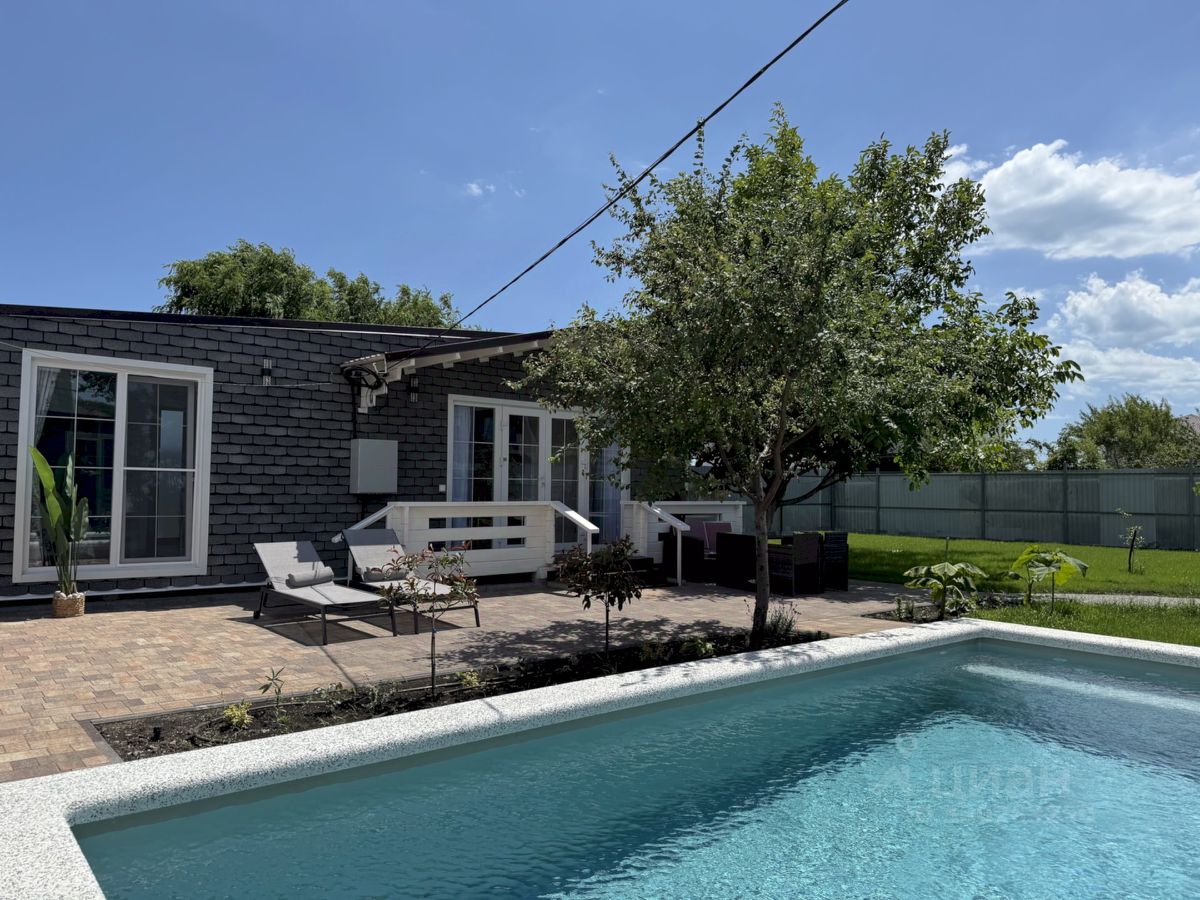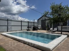 Уютный одноэтажный дом в микрорайоне Персиковый сад — для тех, кто хочет расслабиться под шум деревьев и блики воды. Бассейн с подогревом, финская сауна, мангал, качели, шезлонги, зелёный двор — всё для комфортного отдыха. Подходит для размещения до 4 человек.