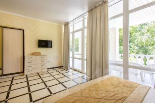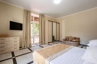 Представляем вашему вниманию коттедж с 6 спальнями и гостиной с камином, который идеально подойдет для комфортного отдыха или семейного отпуска на 12 человек, возможны доп места за дополнительную плату. Коттедж сдается как на длительный срок проживания, так и посуточно от 2 ночей и более. Просторная гостиная с камином станет отличным местом для вечерних посиделок с близкими, а современный интерьер добавит уюта и стиля вашему пребыванию. Особое удовольствие доставит беседка, где можно расслабиться в любое время года, так как в ней предусмотрен кондиционер зима-лето, теплый пол в беседке. Наслаждайтесь свежим воздухом и живописными видами, которые окружают этот замечательный дом. А для ценителей вкусной еды на свежем воздухе оборудована в беседке мангальная зона, где можно приготовить барбекю, плов и насладиться трапезой. Рядом с беседкой предусмотрена зона отдыха для маленьких гостей: детская площадка с качелями и горкой. Итак, трёхэтажный коттедж, площадью 300 м²: На 1 этаже вы найдете: большую современную гостиную, которая поделена на 2 зоны: обеденная зона с полностью оборудованной кухней согласно всем современным требованиям, зона отдыха с камином, где расположен большой раскладной диван, есть выход на террасу с прекрасным видом на горы. Застолья можно проводить как внутри дома, так и на террасе. Комфортабельные 2 спальные комнаты, в каждой из которой предусмотрены: двуспальная кровать с ортопедическим матрасом, прикроватные тумбочки, шкаф-купе, Smart TV, сплит система. Большой холл-коридор: прихожая, шкаф; Санузел: душевая система, унитаз, стиральная машинка, сушильная машина, набор полотенец, все необходимые туалетные принадлежности (шампунь, кондиционер для волос, гель для душа, мыло для рук), фен. На 2 этаже вы найдете: 4 спальные комнаты: в первой и во второй спальнях — двуспальная кровать с ортопедическим матрасом, в одной из спален представлен диван-кровать (1,40), в другой кресло, прикроватные тумбочки, шкаф, Smart TV, сплит система. В третьей и четвертой — две раздельные с ортопедическими матрасами, прикроватные тумбочки, шкаф-купе, Smart TV, сплит система. На 2 этаже есть выход на балкон, где расположен столик со стульями для времяпрепровождения на свежем воздухе. 2 санузла: душевая система с душем, унитаз, гигиенический душ, набор полотенец, все необходимые туалетные принадлежности (шампунь, кондиционер для волос, гель для душа, мыло для рук). Один из санузлов расположен в отдельной спальной комнате, другой на этаже в общем доступе. На 3 этаже вы найдете зону отдыха и релакса: русский бильярд, приставка на 13 тыс. Игр, большие нарды, диван раскладной, выходы на балкон для приятное времяпрепровождения на свежем воздухе. На 3 этаже есть санузел без душа. Кроме того, на всей территории коттеджа доступен высокоскоростной Wi-fi, предусмотрена парковка до 6 паркомест на территории коттеджа под видеонаблюдением. Коттедж расположен всего в 15 минутах езды на авто до моря, до ближайшим магазинов всего 5 минут езды или пешк