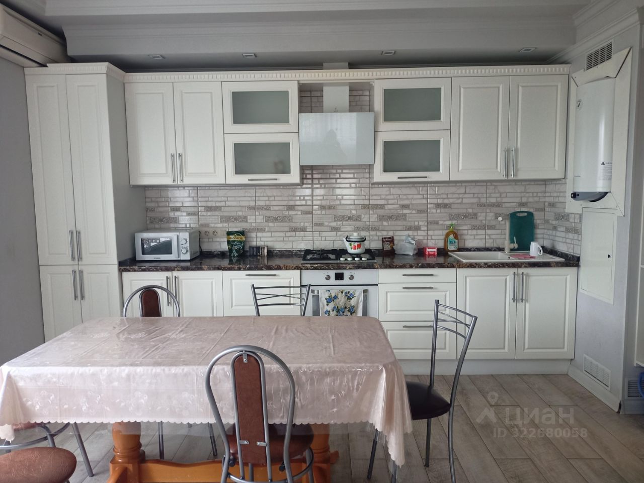 Квартира в частном доме на 3 этаже, центр города Новороссийская, ванна 8 м, кухня-столовая 16 м., гостевое зало 24 м., спальня 26 м. с балконом, есть большая гардеробная и все удобства для проживания семьи до 5 человек, дети от 7 лет! 2-хспальная кровать, 2 х спальный диван, диван.