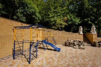 Рядом с беседкой предусмотрена зона отдыха для маленьких гостей: детская площадка с качелями и горкой.