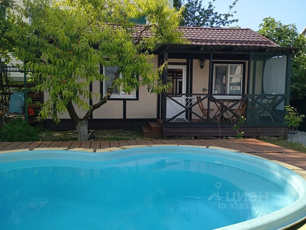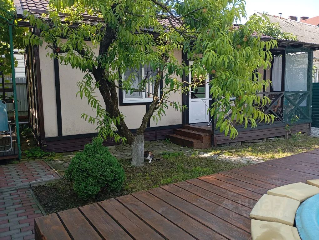 Сдаётся отдельный двухкомнатный домик, 5 спальных мест: одна изолированная спальня с двухместной кроватью, шкафом, комодом; во второй комнате — комфортные раскладной диван и кресло, шкаф, телевизор, холодильник, эл. чайник. В каждой комнате кондиционер. Душ и туалет в домике. При доме — открытая терраса с диванчиком и столиком в тени персика с видом на бассейн. Есть кухня общего пользования, где гости могут приготовить себе пищу. Все условия для спокойного отдыха.