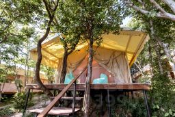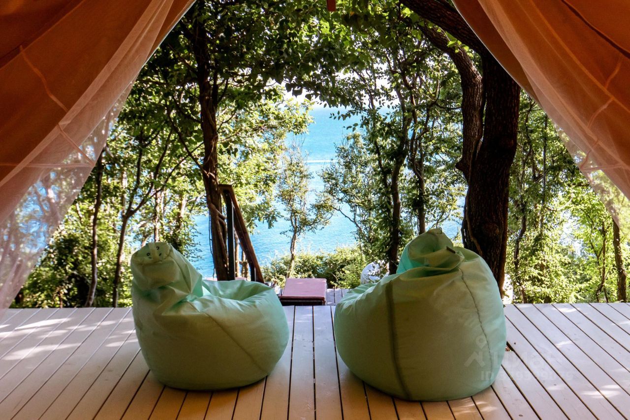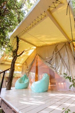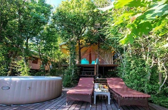Сафари тент, с верандой и смотровой площадкой с джакузи и лежаками. Удобства собственные, внутри шатра.