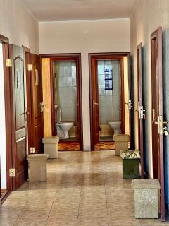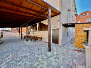 Во дворе мангальная зона .В дом заведены все центральные коммуникации :свет,вода и канализация ,газ.Дом полностью с отоплением ,что позволяет эксплуатировать гостиницу круглый год.К морю 500м .