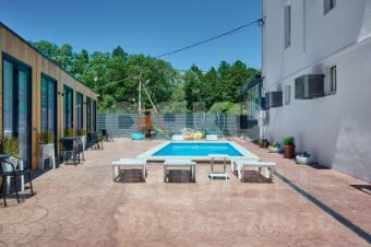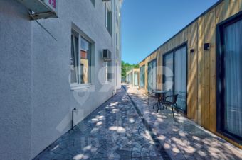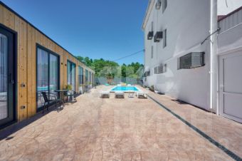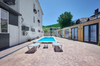 Земельный участок в собственности 10 соток земли. Всего строений на участке около 900м2 2 капитальных строения (20 гостиничных номеров) и 10 домиков каркасно-модульного типа, бассейн, отличная детская площадка и несколько зон для отдыха и прогулок, хозяйственные постройки, имеется свободная парковка по фасаду участка. Большая прилегающая территория. Все необходимые коммуникации заведены - центральная вода и канализация, возможность подключить сетевой газ, электричество 50кВт, кроме того имеется резервная своя скважина на воду и септики.