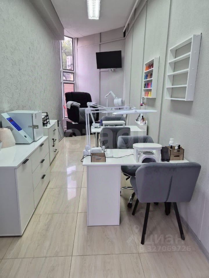 Помещение полностью оборудовано всем необходимым для ведения салона красоты - столами, светильниками и креслом для маникюра и педикюра. Также проведен интернет и телевизор.