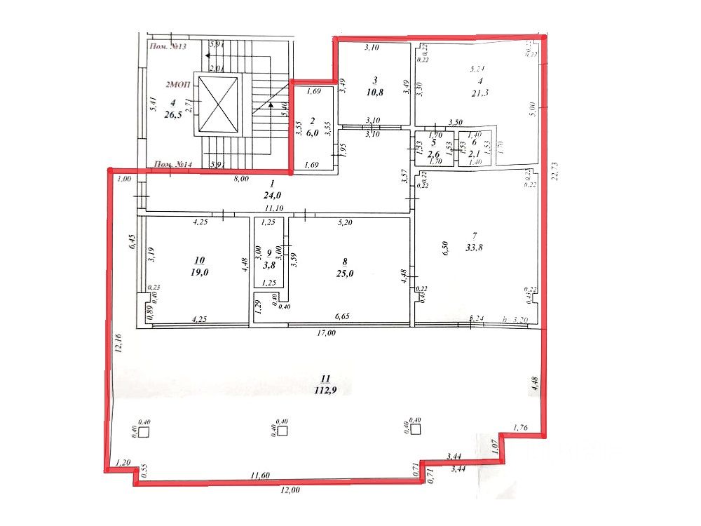Помещение на 3м этаже: 261,3 кв.м. - с террасой и видом на море, в стадии ремонта - что-то еще можно успеть сделать под себя.