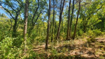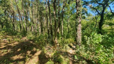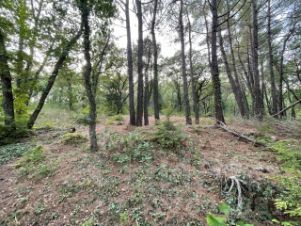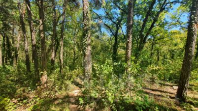 Участок правильной прямоугольной формы, имеет незначительные перепады высот. Первая половина — от дороги — практически ровная, вторая часть с наклоном вниз. Это создает естественную изолированность от проезжей части. На участке преобладает молодая поросль лиственных, есть и взрослые деревья, преимущественно сосновые, что способствует максимально вариативному использованию пространства под разнообразные проекты.