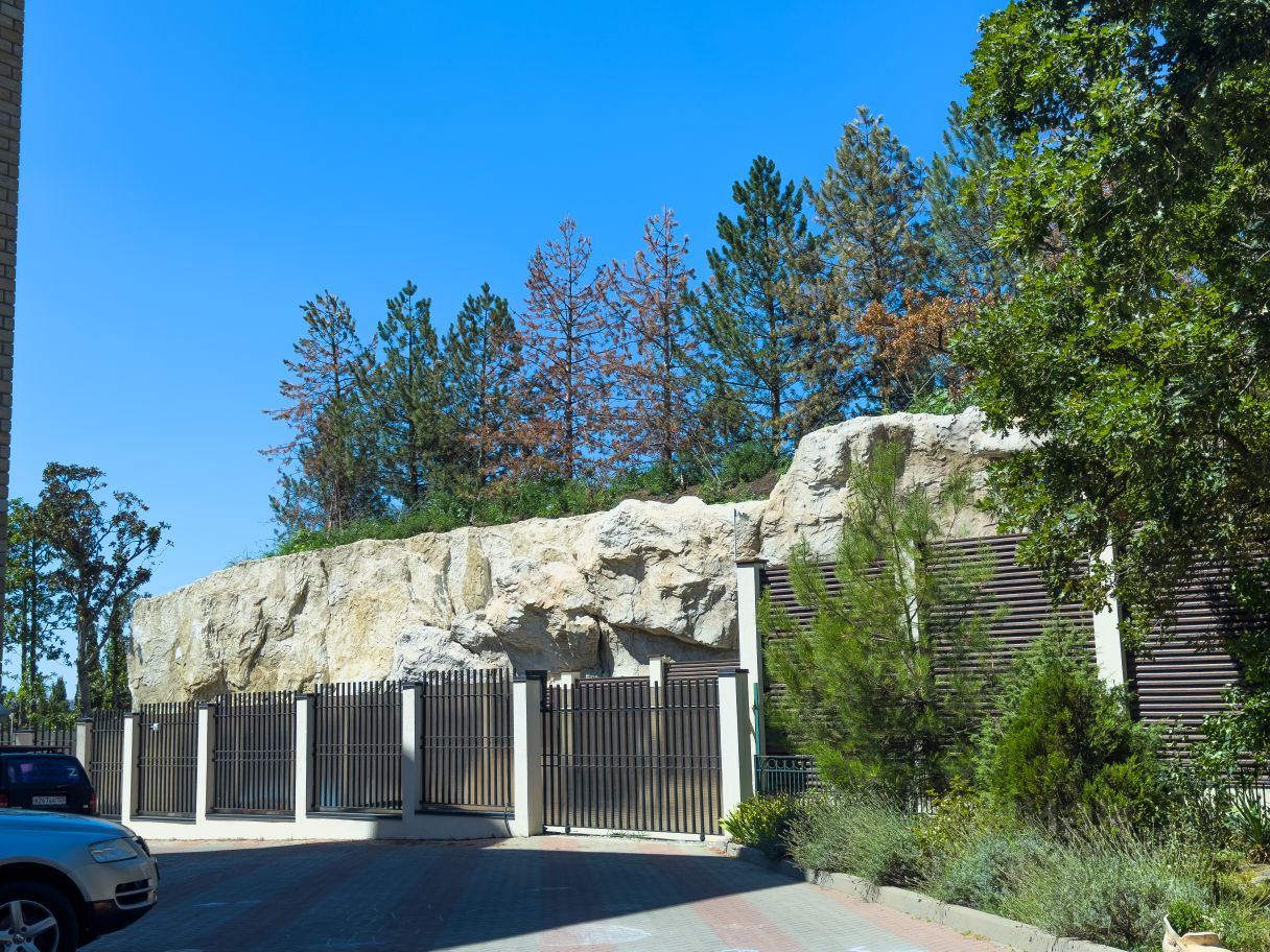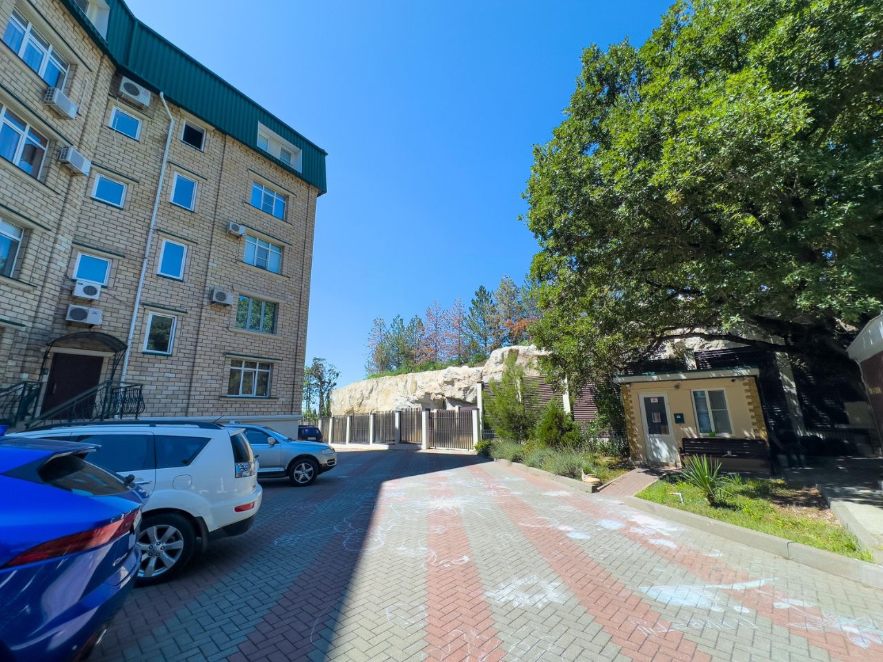 место у моря, Охраняемая, огороженная территория с парковкой.
