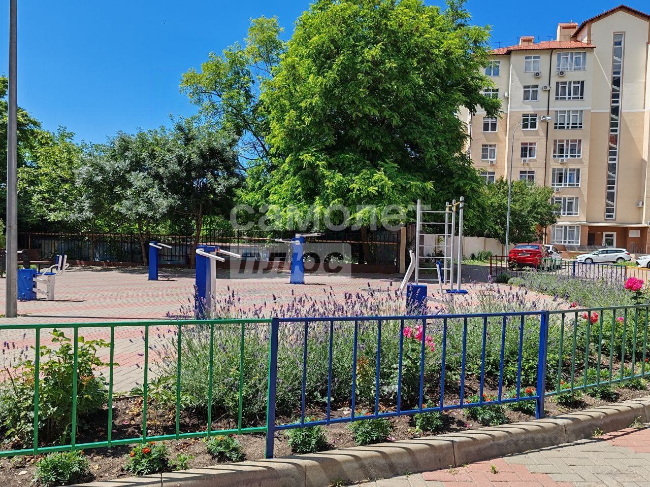 -Двор комплекса благоустроен и предлагает множество возможностей для активного отдыха: спортивные и детские площадки, озелененные зоны, уютные лавочки и достаточное количество парковочных мест.