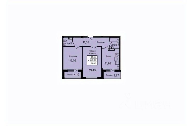 Общая площадь71,46 м²