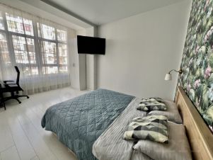-Квартира полностью укомплектована всей необходимой современной техникой (плита, духовой шкаф, холодильник, стиральная машина, вытяжка, СВЧ, 2 инверторные сплит-системы Ballu, 2 ТВ ) и мебелью. А также необходимые различные мелочи.