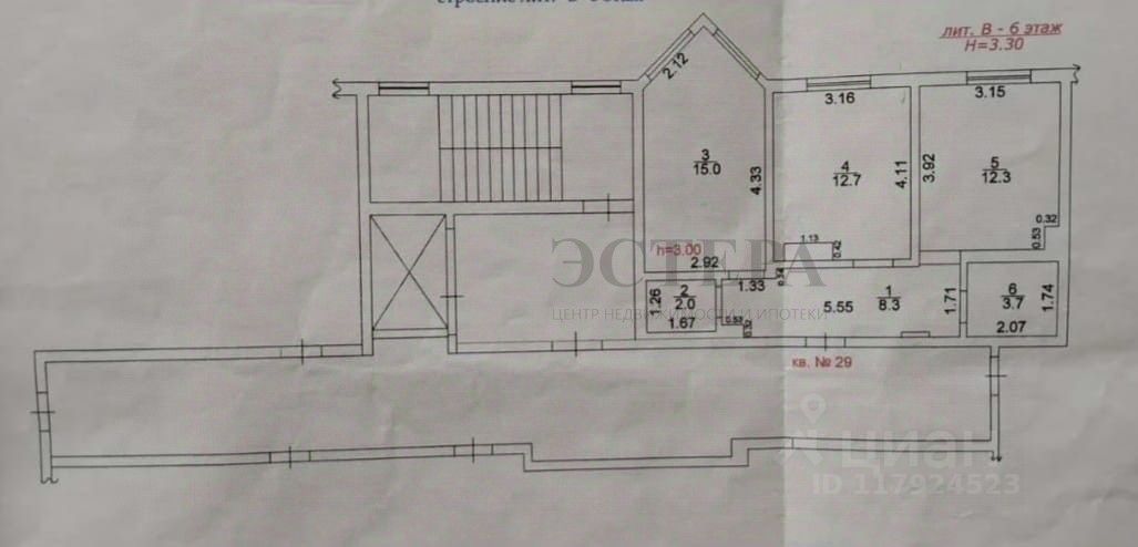 Квартира находится на шестом этаже.