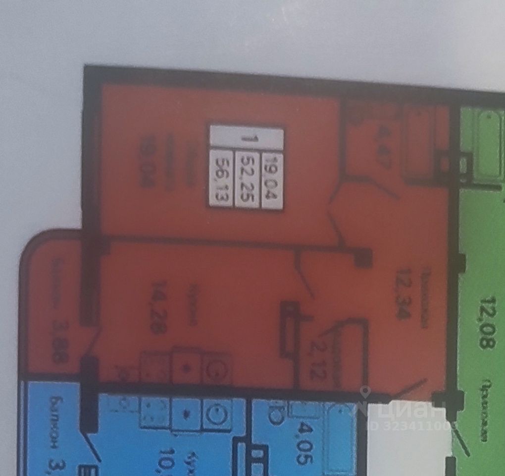 Площадь квартиры-56,13кв м