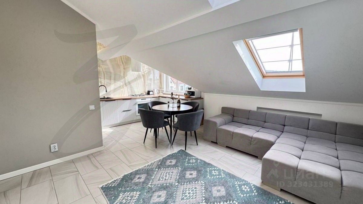 Полноценная двухкомнатная квартира на 8 этаже, где источником света являются не только панорамные окна, но и окна на потолке, будет для вас уютным гнездышком. Современный ремонт в светлых тонах создает атмосферу свободы, объединение кухни, гостиной и столовой создает ощущение легкости и динамичности.