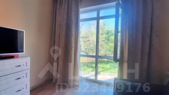 В спальне окно в пол с видом на сквер Дубки.
