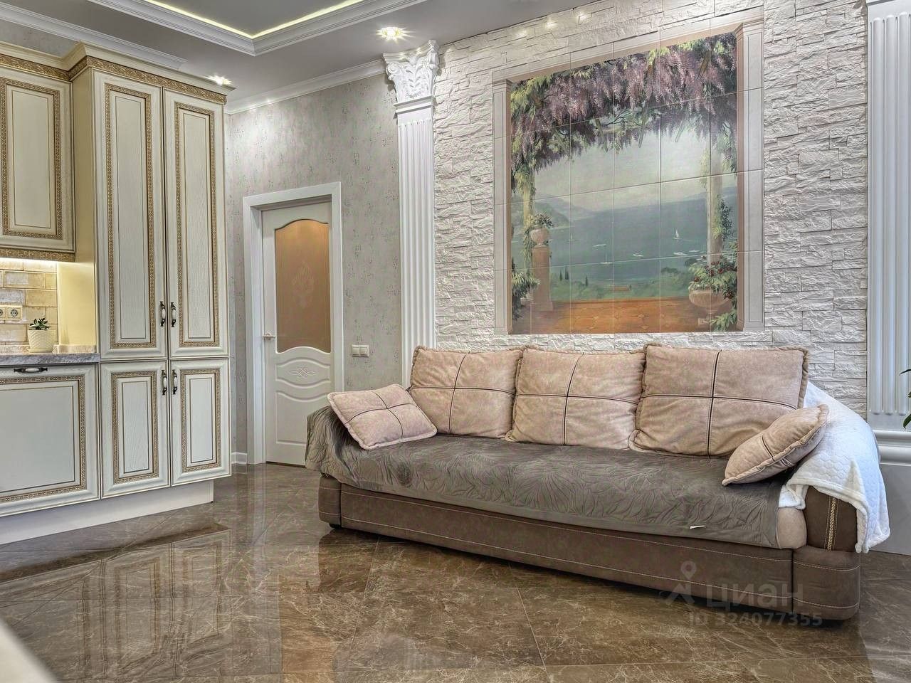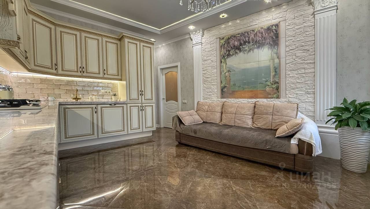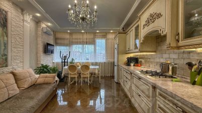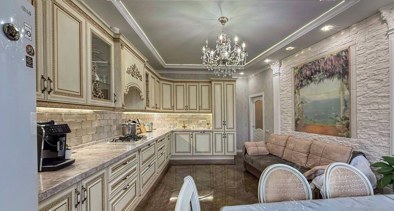 Квартира с большой кухней-гостиной и двумя изолированными комнатами. Дизайнерский ремонт с использованием качественных материалов, встроенные шкафы в комнатах, теплый пол по всей квартире.