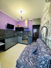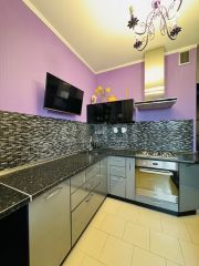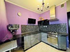 В квартире установлен дизайнерский кухонный гарнитур; мебель и техника могут остаться по согласованию сторон, что позволяет заехать на условиях готовности.