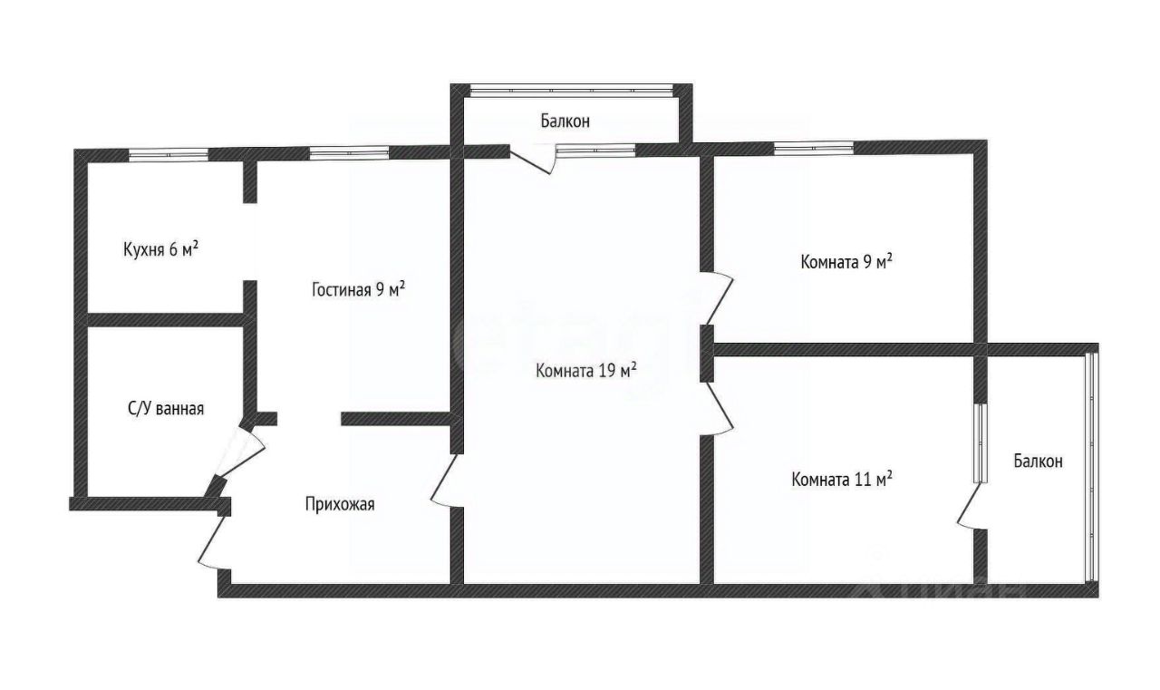 Квартира располагается на втором этаже. Есть два балкона, выходящие на разные стороны света. Две комнаты изолированные, одна комната проходная. Просторный санузел и прихожая