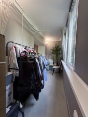 В Дальней комнате оборудована кладовка, которая выполняет функцию гардеробной, освобождая жилое пространство от лишних вещей.
