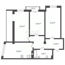 Комнаты 16,5/13/24,1 кв.м