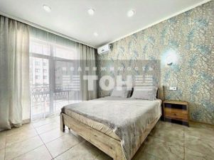 Просторная кухня-гостиная, изолированная комната, совмещённый санузел, коридор, гардеробная.