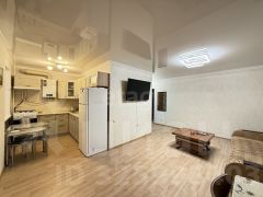 В квартире просторная кухня-гостиная, два санузла, в каждой комнате установлен кондиционер. Выполнен ремонт, полностью мебелирована - заходи и живи. Также в подьезде сделан свежий ремонт.