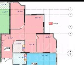 Общая площадь квартиры - 83,6 кв м.Лоджии присоединены к общей площади документально.Изолированные две комнаты по 16 кв м. Огромная кухня столовая. Квартира расположена на третьем высоком этаже- по факту - четвёртый этаж( внизу коммерческие помещения)