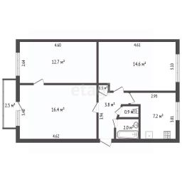 Общая площадь квартиры составляет 58,1 кв.м.