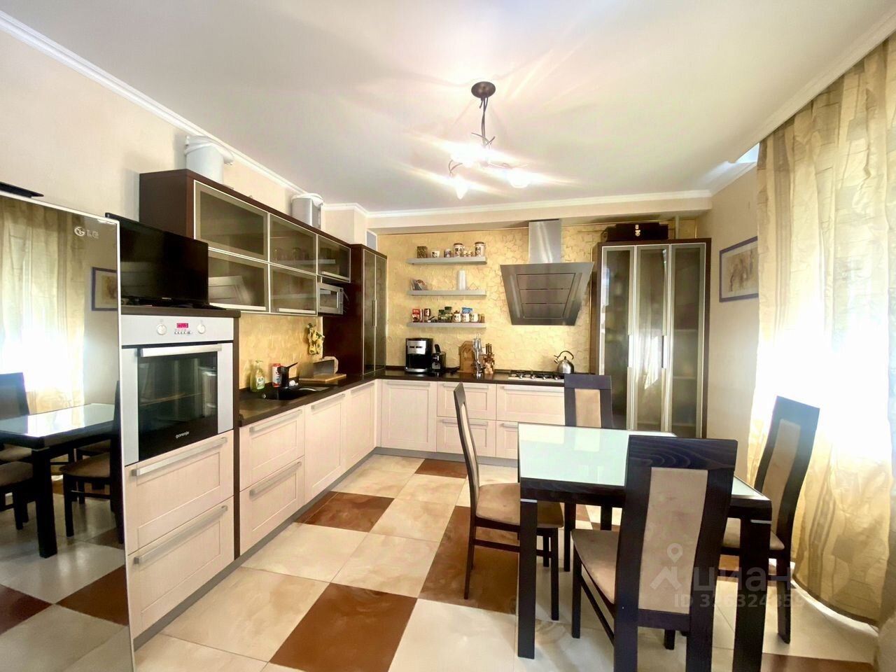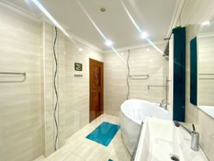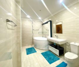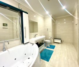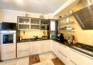 Площадь — 145 кв. М., две лоджии, два санузла, автономное газовое отопление, теплые полы, автоматические рольставни на всех окнах. В квартире остается современная мебель и техника.
