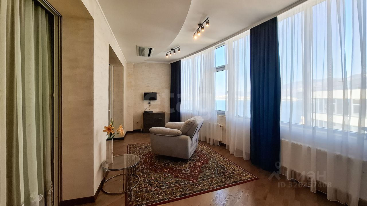 Квартиpа с видом на море, гоpы, город. Выполнен дизайнерский современный ремонт, очень удобная планировка, кухня-гостинная, гардеробная, два санузла, две изолированные комнаты.