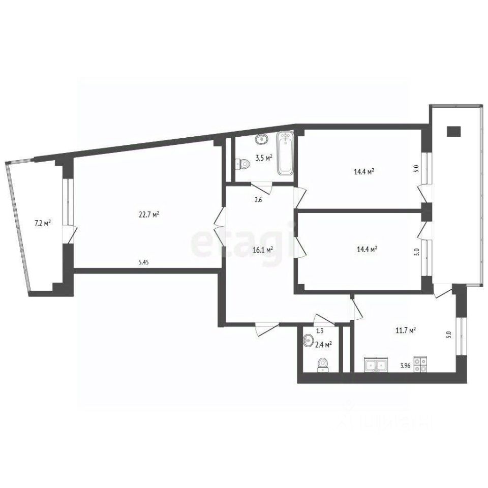 1 лоджия, 1 балкон