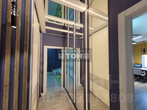 Предусмотрены различные сценарии освещения, много дизайнерских решений. В гостиной привлекает свое внимание деревянная мозаика, в прихожей - зеркальное панно с подсветкой.