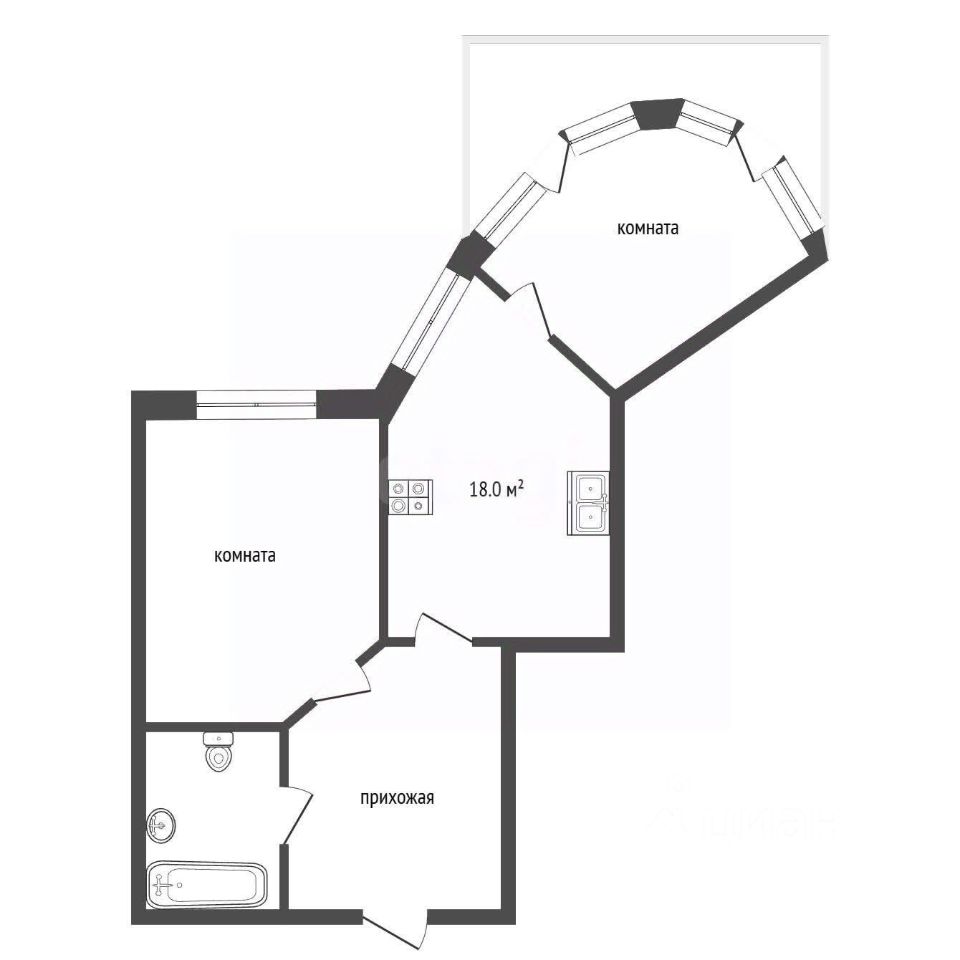 Ключевое преимущество — две изолированные комнаты БЕЗ ПЕРЕПЛАНИРОВОК с просторной кухней-столовой!