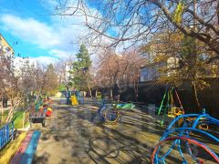 Дом кирпичный, пятиэтажный, без лифта. Хороший благоустроенный двор с детской площадкой и зоной отдыха.