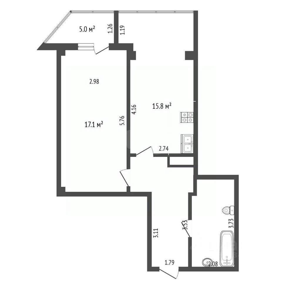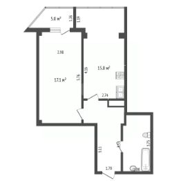 Общая площадь: 52,6 кв.