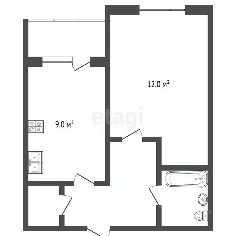Объект расположен на комфортном третьем этаже пятиэтажного кирпичного дома. Планировка включает просторную комнату 14 м² и кухню 9 м², из которой имеется выход на большой балкон нестандартной формы, что добавляет пространству индивидуальности.