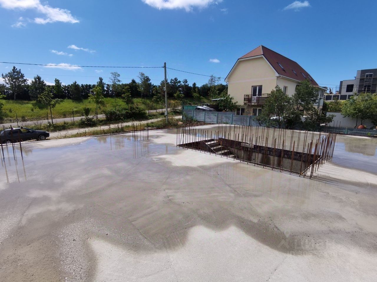 Продается отличный участок под капитальное строительство рядом с клубом Гольф Резорт. Уже завершено строительство фундамента и цокольного этажа, подклбчено электричество и видеонаблюдение. Кадастровый номер указан на фото. Остальные вопросы по телефону.