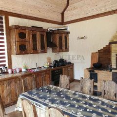 Большая веранда оборудована кухней из натурального дерева, каменной печью, мангалом и фурной — отличное место для отдыха на свежем воздухе. Там же есть санузел с душевой, кладовая и дополнительная спальня.