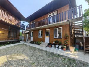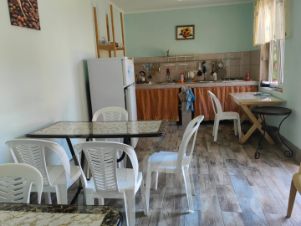 Второе двухэтажное строение -на первом этаже, оборудованная кухня- столовая для самостоятельного приготовления пищи + один номер со всеми удобствами + комната для хранения утвари, на втором этаже два номера со всеми удобствами.