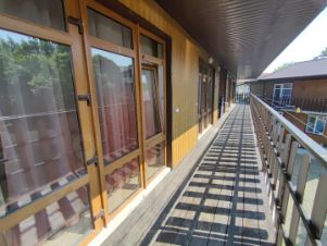 Первое строение - двухэтажный гостевой дом на 9 номеров , у всех видовая, панорамная входная группа, все номера полностью с удобствами ( кондиционер, телевизор, холодильник,шкаф, совмещенный санузел)