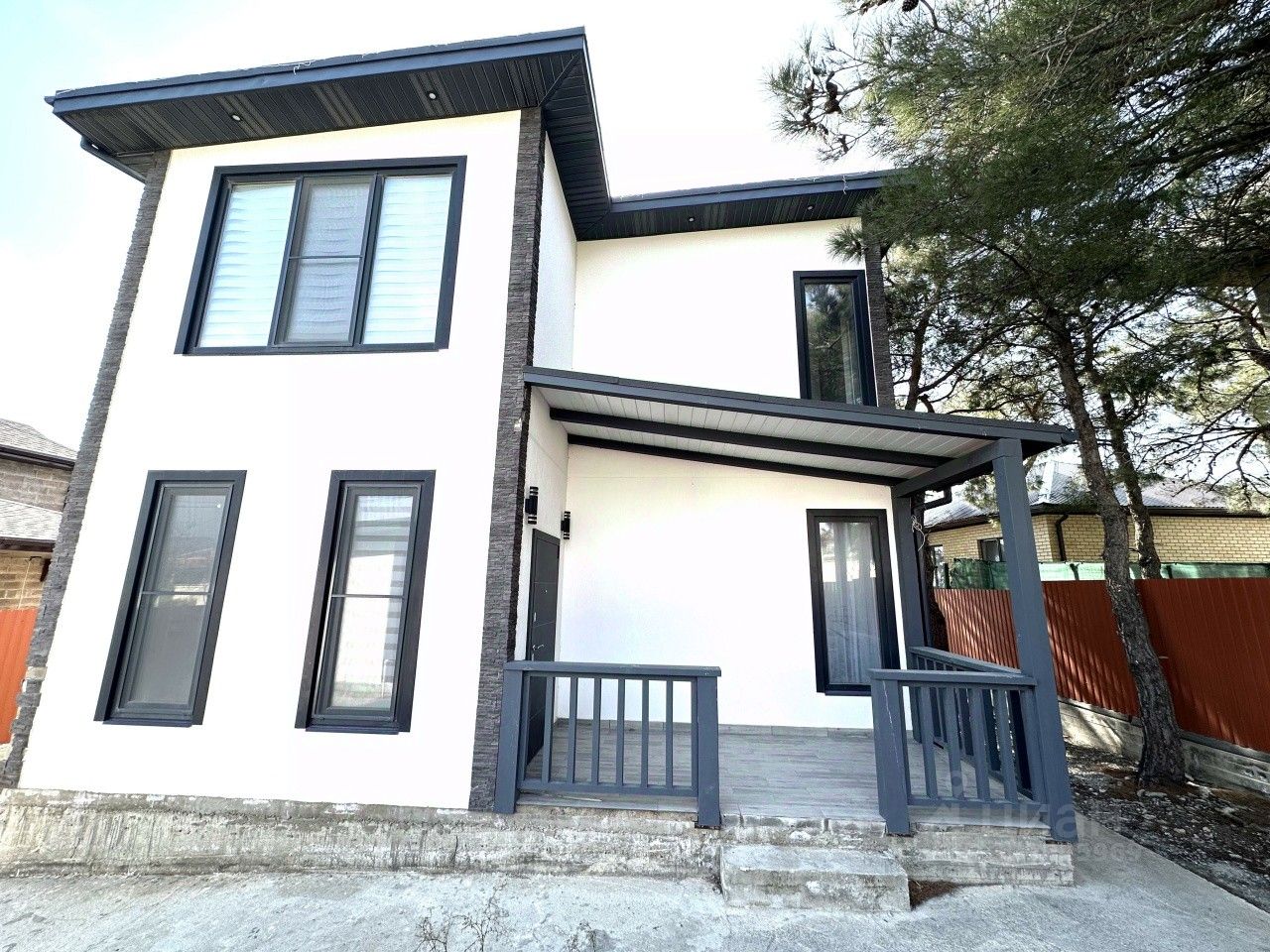 Дом и двор окутан пицундскими соснами, задний двор открыт и свободен для установки бассейна, мангальной зоны и сада.